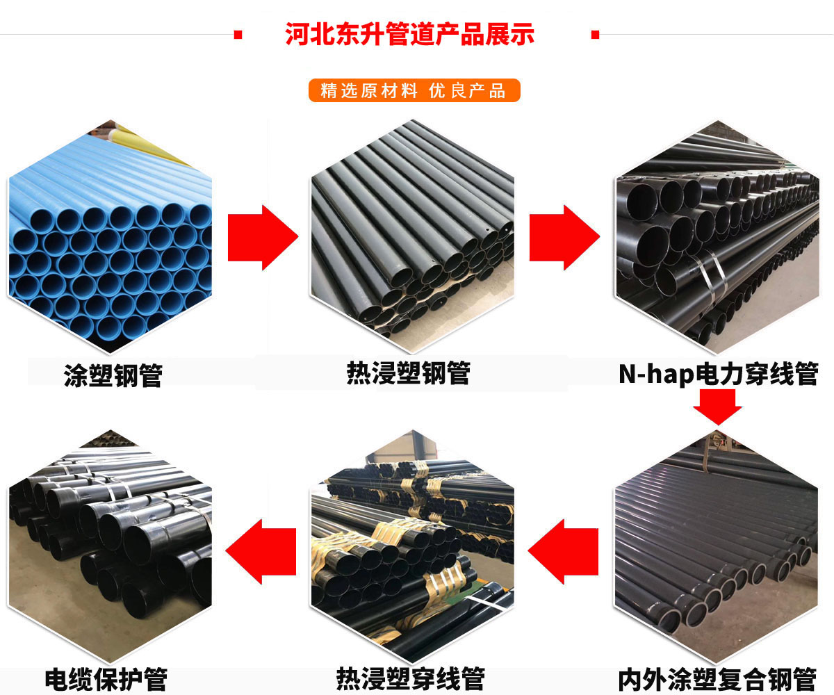 河北東升管道制造有限公司主營(yíng):熱浸塑鋼管,N-hap電力穿線管,電纜保護(hù)管等產(chǎn)品